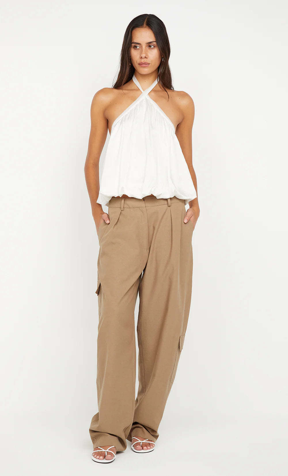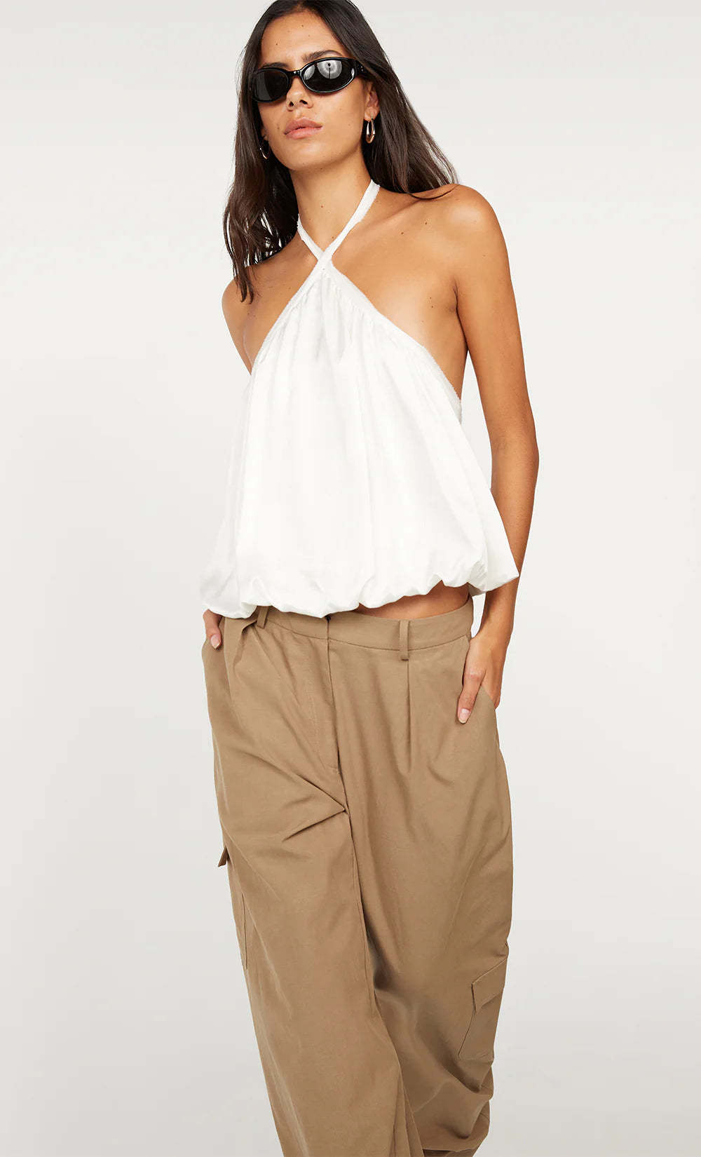 This white halter top features a relaxed, flowing fit with an open-back design for effortless summer elegance. Lightweight and breathable, it’s perfect for warm days and casual chic outfits.