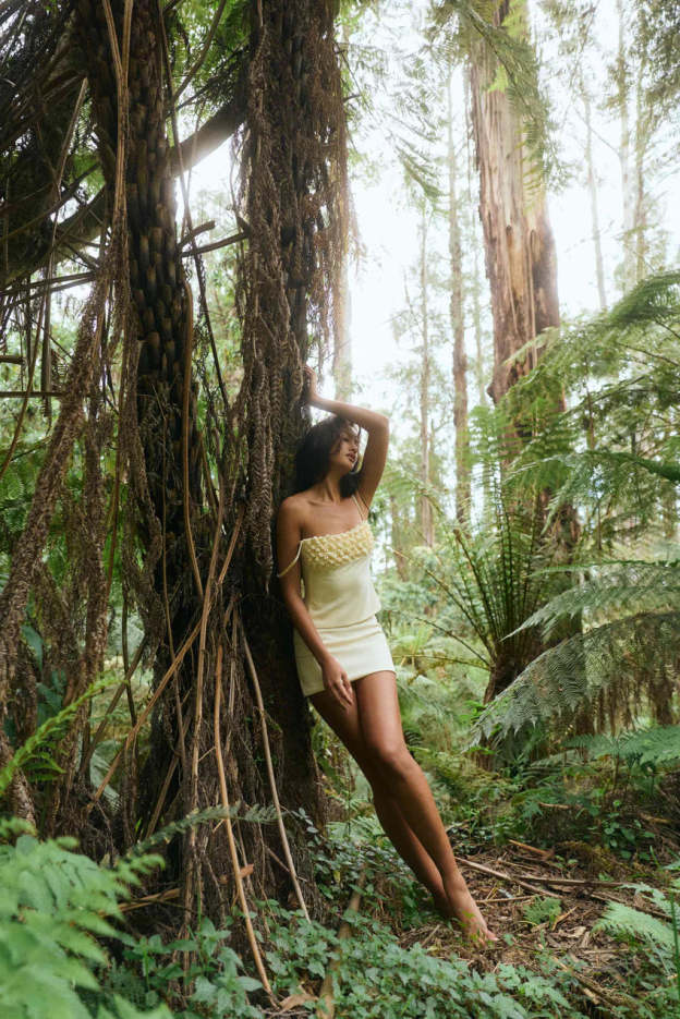 A sleek body-hugging mini skirt designed to pair perfectly with the matching floral cami top or style solo.