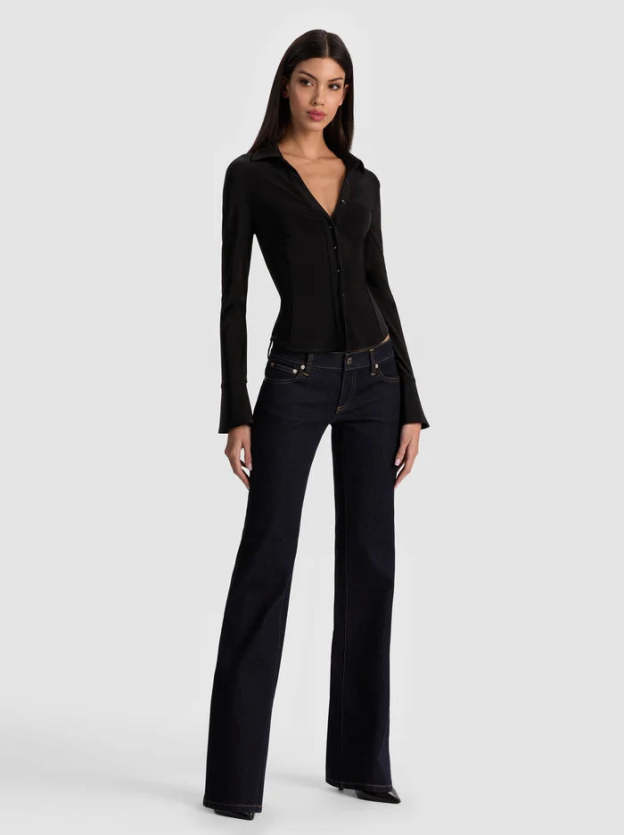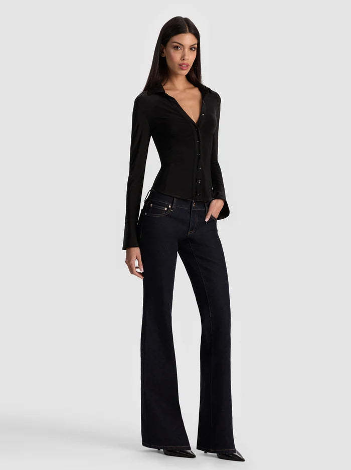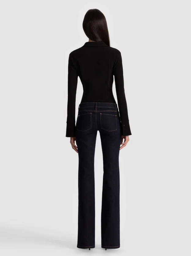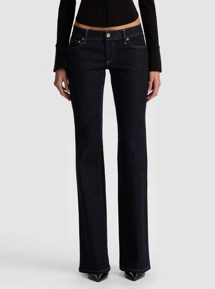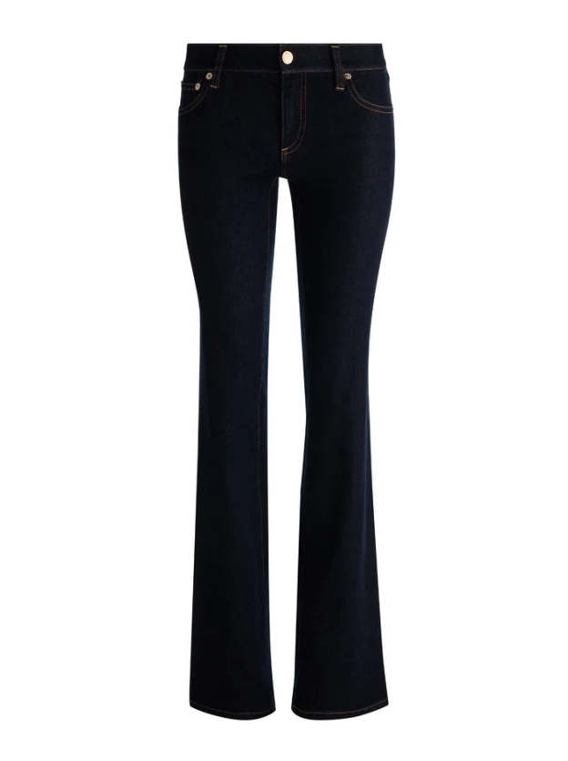 A versatile pair of low-rise bootcut jeans in deep blue denim. Subtle flare adds balance and a flattering leg-lengthening effect.