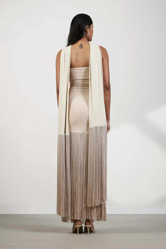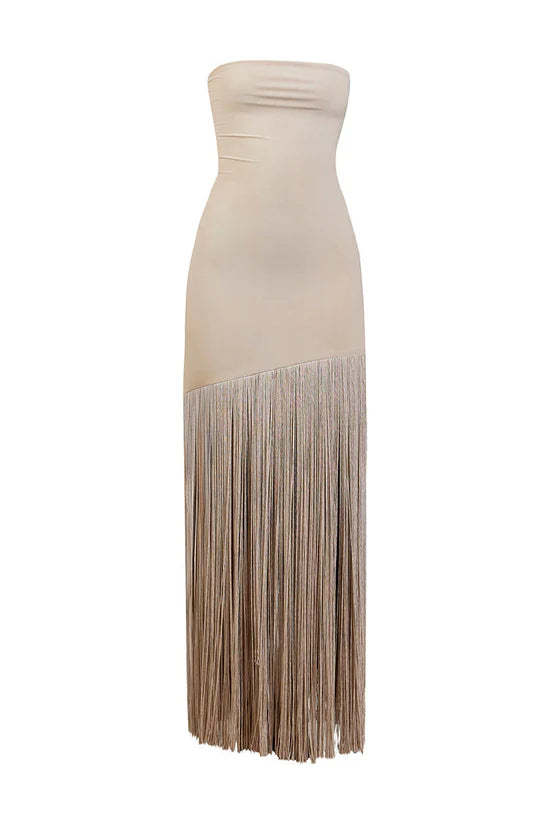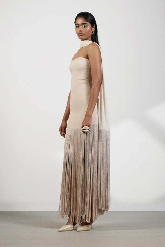 Sand Fringe Muse Strapless Gown